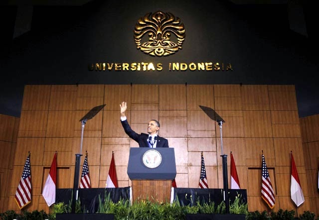 | Presiden Obama berpidato di Universitass Indonesia, gambar: yvesrey.wordpress.com |